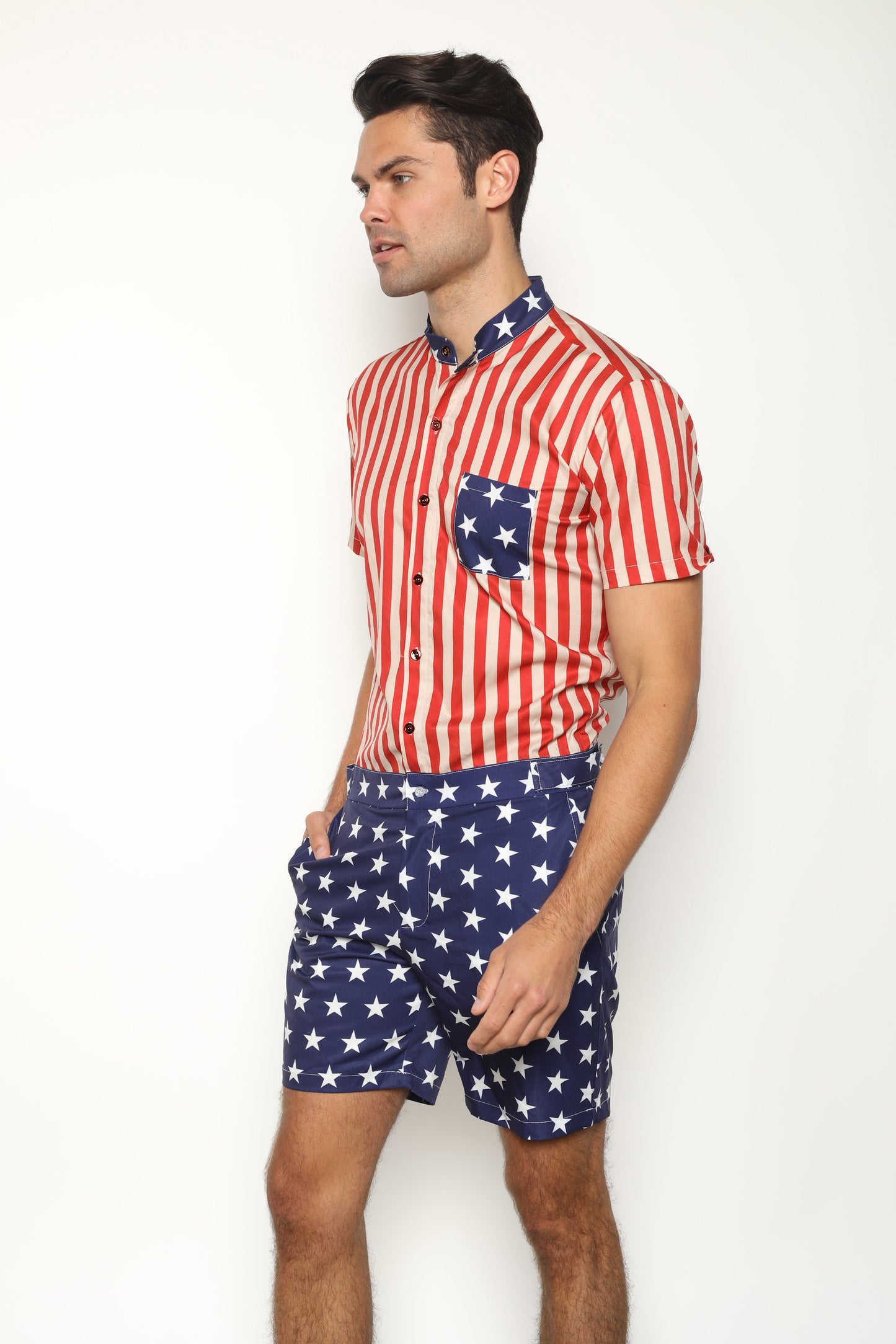 - Stars & Stripes: Show your patriotic spirit with The Patriot Romper, a seamless blend of masculinity and modern style. This versatile piece pairs perfectly with sneakers, sandals, or your favorite jacket. Stand out and make a statement with The Patriot Romper!