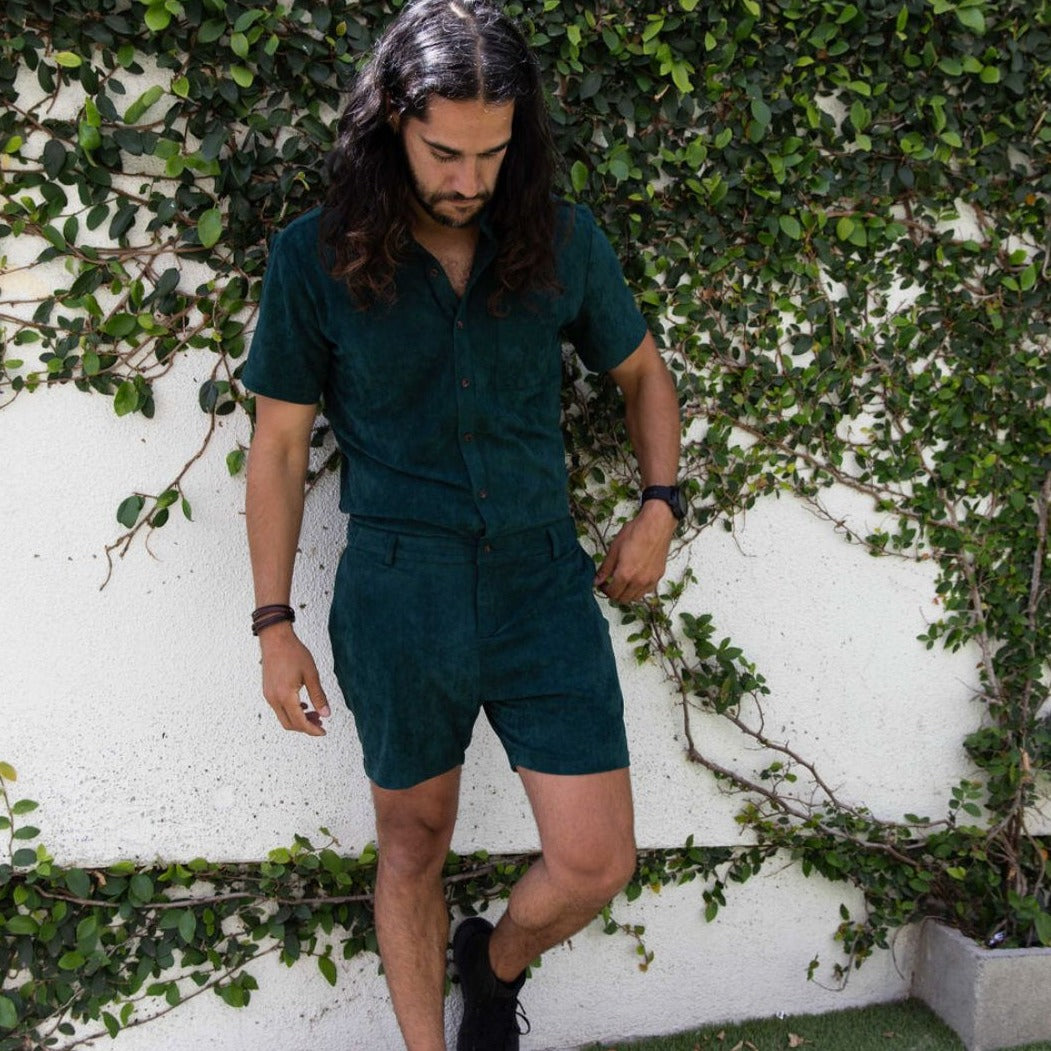 Emerald Suede Romper - Premium Cotton, Spandex Blend