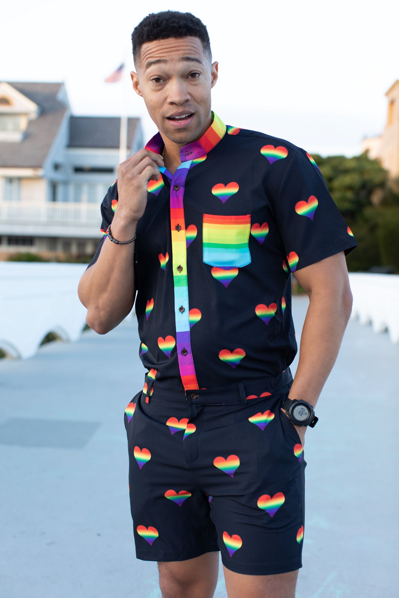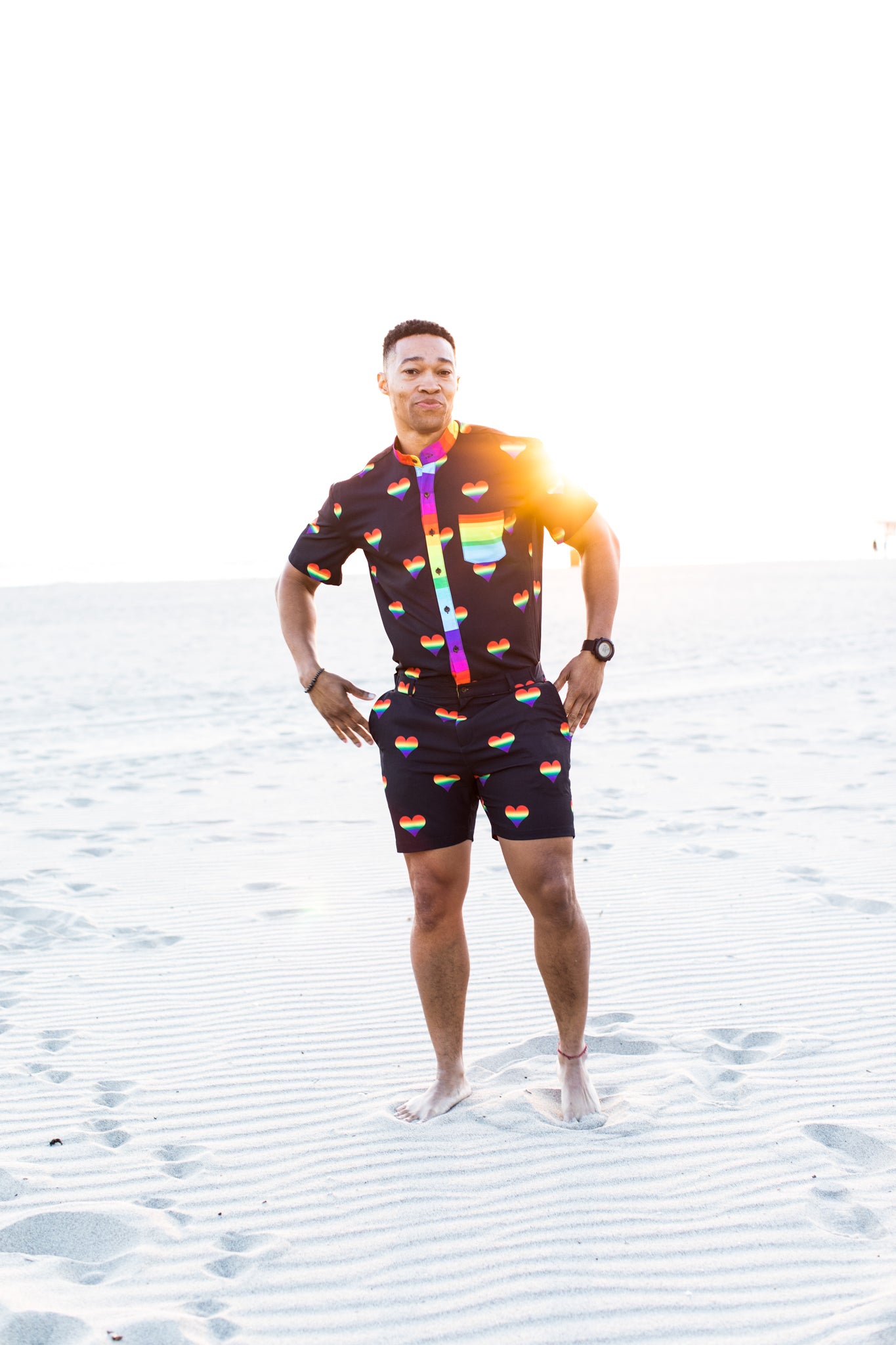 Elevate your wardrobe to the next level with the Love Pride Romper. This versatile piece caters to the modern man who values both fashion and practicality. From lazy weekends to sunny beach trips and even casual nights out, this romper has got you covered in style and comfort.