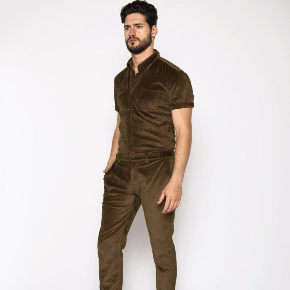 Olive Green Velvet Jumpsuit